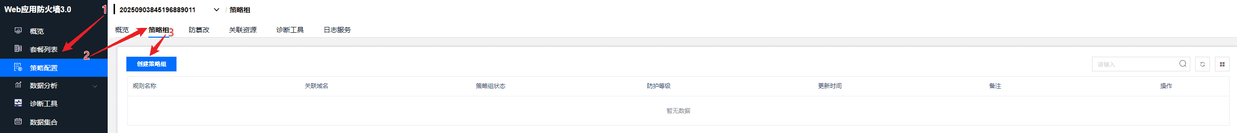 在策略组页面上点击创建策略组