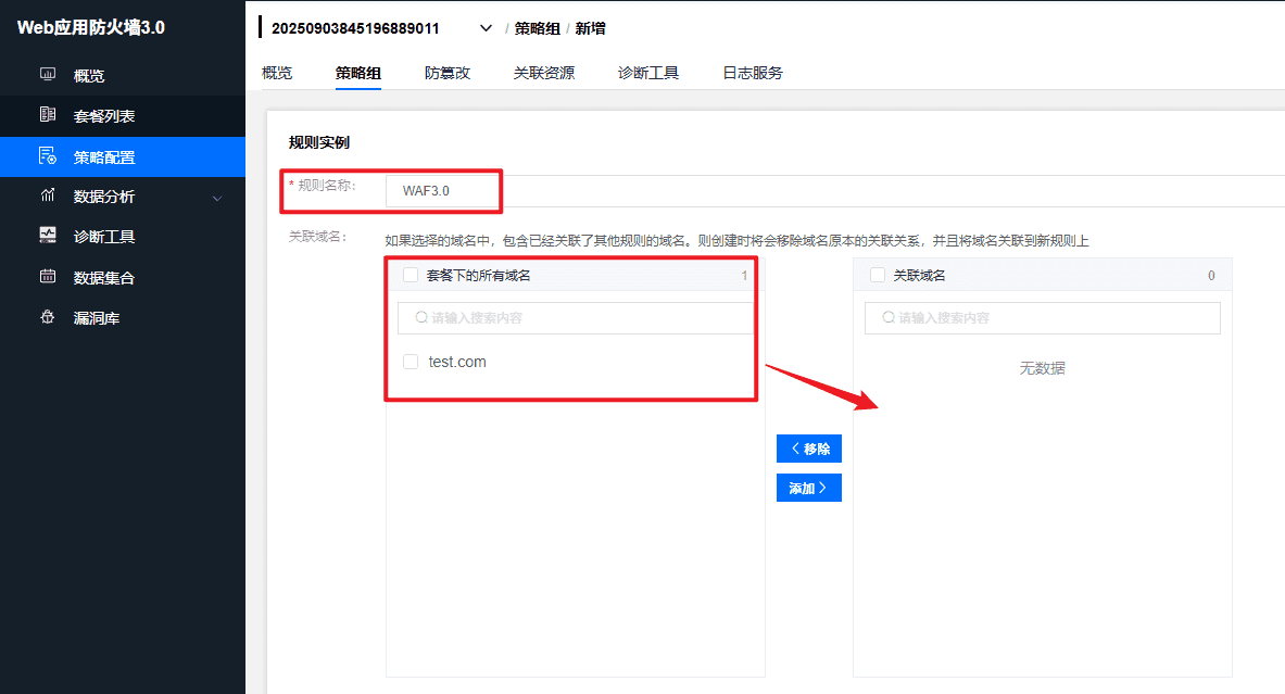 输入规则名称并关联域名
