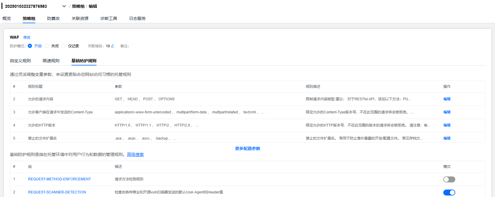 恢复 :通过基础防护规则,禁用更细分基础防护规则条目¶